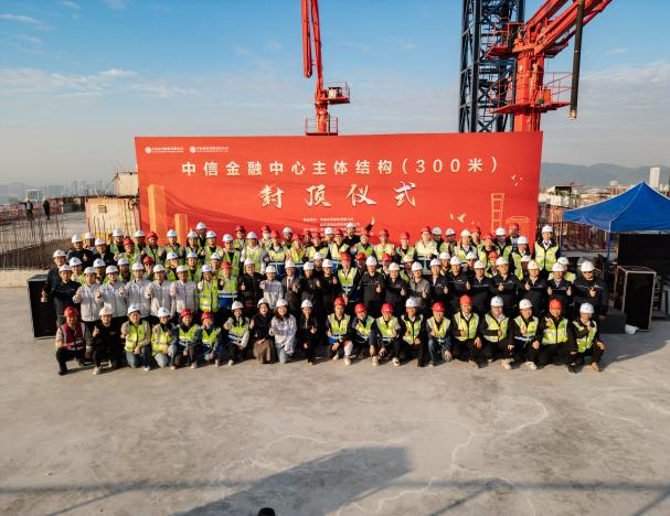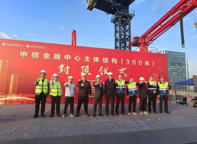 12月16日,中信金融中心项目T1塔楼正式封顶,各参建单位相关负责人出席封顶仪式。