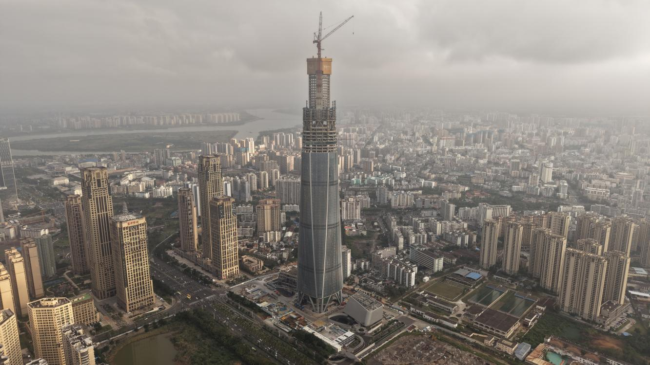 2025年12月16日,随着最后一方混凝土浇筑完毕,海南中心项目核心筒结构成功封顶,项目当前建设高度已达402米,标志着项目建设取得了里程碑式的重大进展。